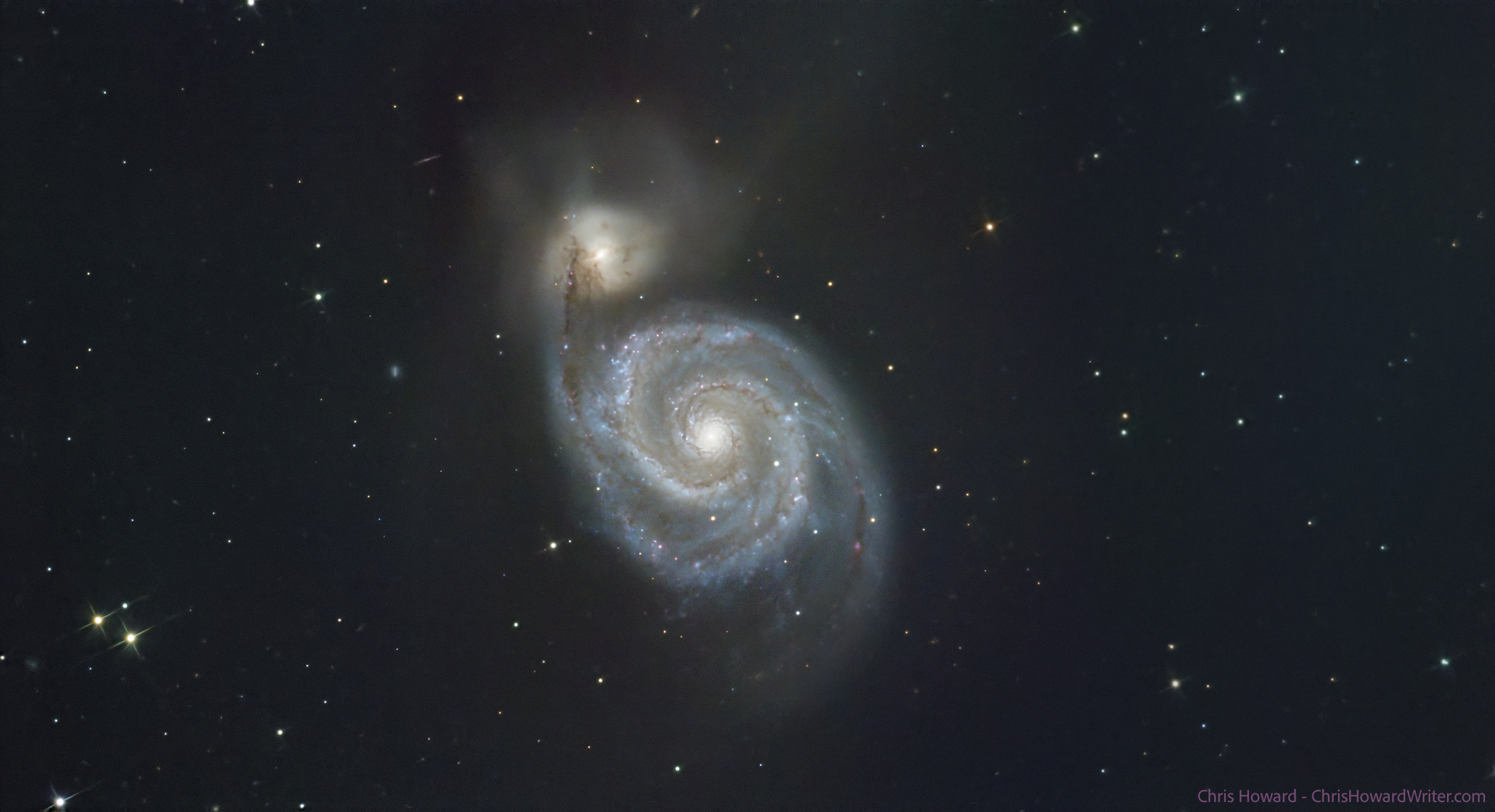 IC4277 300mly (left, top of M51) edge-on spiral galaxy