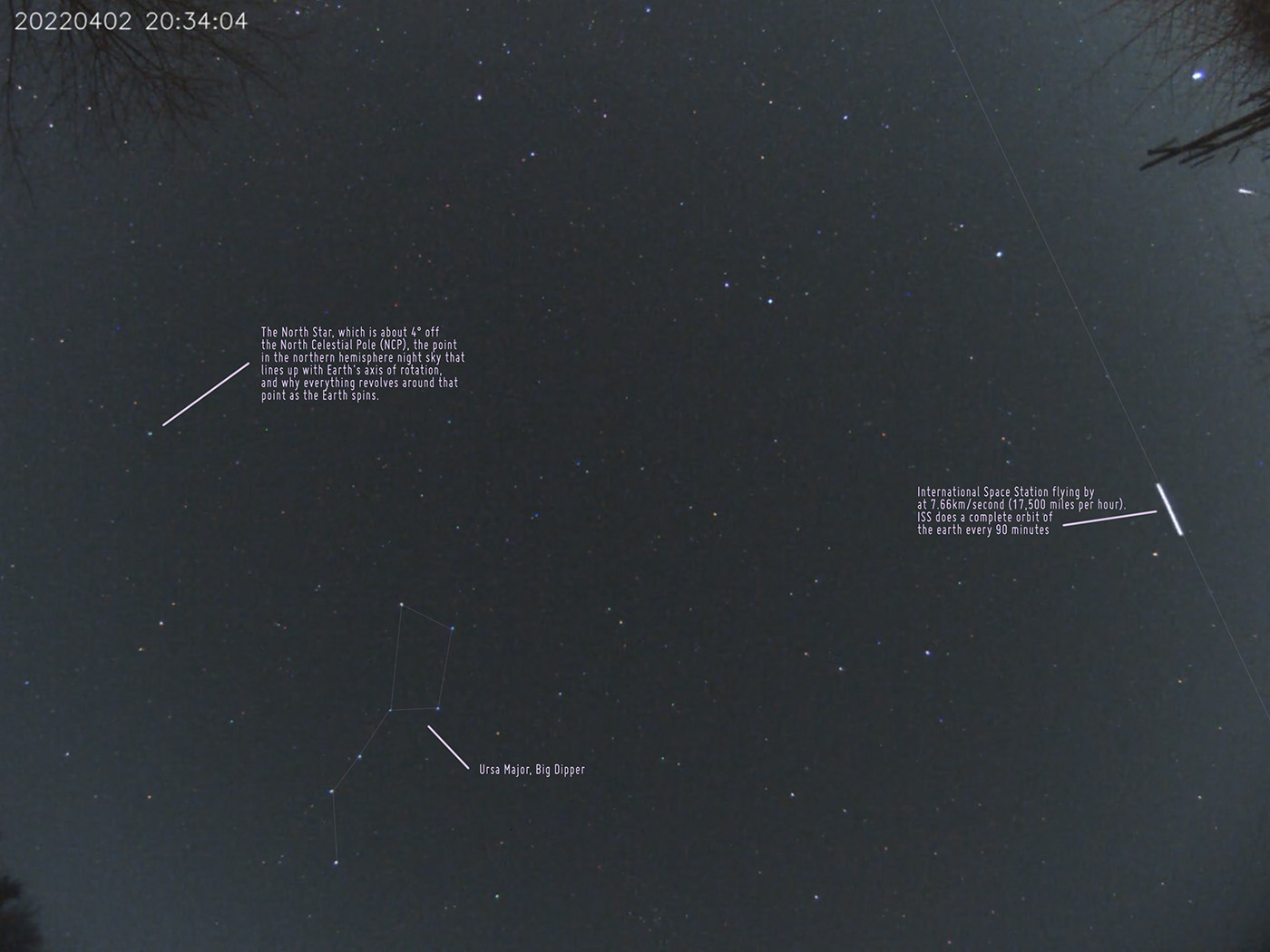 Examples of the camera's field of view from the back deck, close to the house. I have it in the middle of the backyard now, with a full view of the sky.