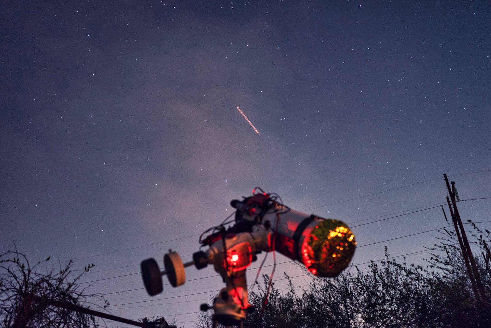 An 8 second exposure of my astro setup during last night's imaging run, shot in the backyard with the Sony A7s and Zeiss Batis 25mm f/2 lens. The skies weren't very clear, with patchy clouds sliding by and overall poor seeing (astronomical seeing represents the impact of atmospheric turbulence), but still managed to capture Messier 5 in the constellation Serpens.