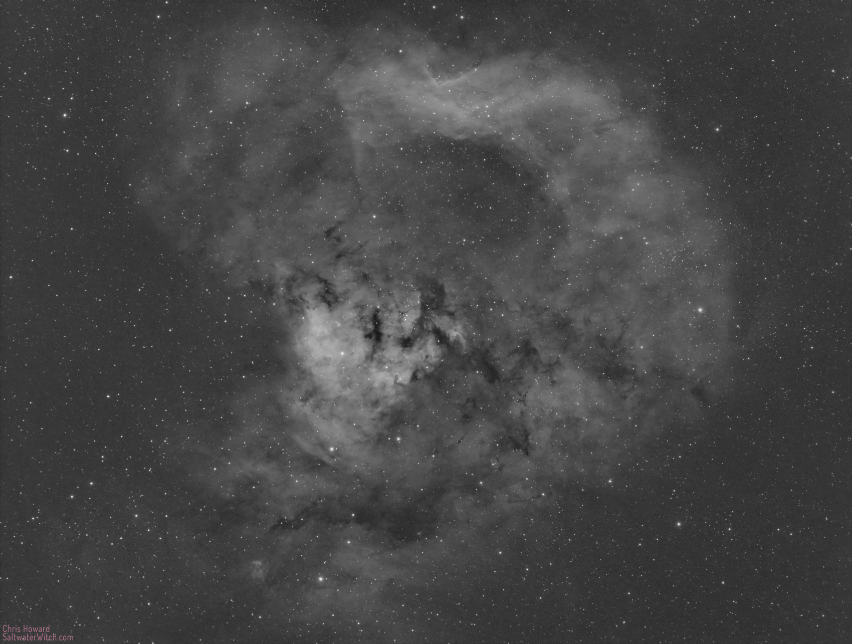 The Cave Nebula (Caldwell 9) in Cepheus. I started the Ha run last night but Earth's atmosphere wasn't having any of it. Seeing was poor at best, and the random wisps of cloud passing through just made it worse. I stacked the first 30 subs just to see where it was going, and even with the excessive noise, I think this is headed in the right direction.