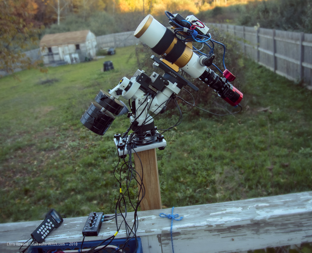 Tonight's setup: William Optics GT81, Moonlite Focuser, ZWO ASI1600MM-Pro, ASI 120MM. This is my narrowband setup, and tonight it's all about the focuser.