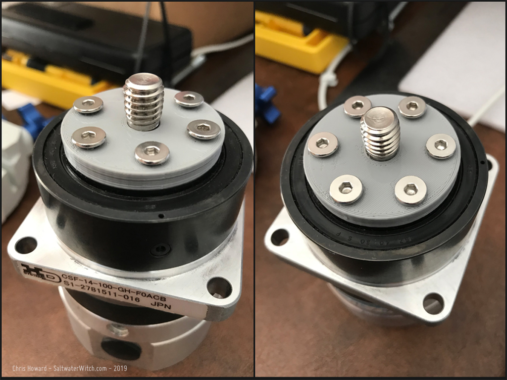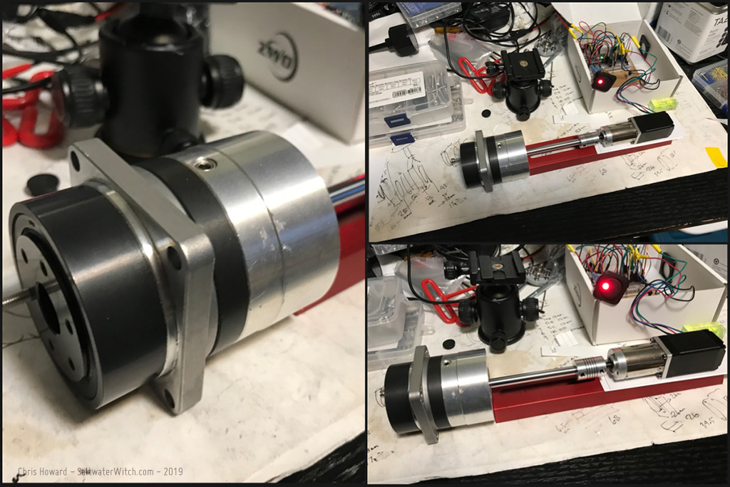 Our beautiful planet rotates on its axis once every 23.93447 hours (23 hours, 56 minutes, 4.091 seconds). This is one sidereal day--sidereal time is based on the earth's rate of rotation measured relative to the stars that are--for the most part--fixed in position. Here we go: 23.93447 hours = 86164.091 seconds. So, we need to do a 360 degree rotation of the right ascension motor shaft in 86164.091 seconds to match the earth's rotation speed. Sounds simple enough. Backing into the time/revolution (360 deg) before the 100:1 gearhead ratio, we have: 86164.091 / 100 = 861.64091 seconds, or 14.3606 minutes / 360 degrees, which is close to what I'm getting for a full rotation with my current test system: NEMA 11 stepper + 100:1 planetary gearhead and A4988 stepper driver running with 1/16 microstepping. I'm probably going to build the second prototype with a NEMA 17 + 139:1 planetary gearhead, but still waiting on that to arrive. And I will most likely continue to run with 1/16 microsteps. The downside is microstepping significantly reduces torque--I'm sacrificing torque for slower, smoother steps, but I'm thinking I will make up some of this with the 100:1 harmonic drive gearhead (CSF-14-100-GH-F0ACB). The idea is to get the motor with the planetary gearbox to do one rotation in a little over 14 minutes, and then by adding the harmonic drive I'll multiply the rotation time by 100, and we should end up around 86164.091 seconds, or one sidereal day. I think that sounds right? (Also, don't forget the direction is reversed with the harmonic drive--clockwise rotation of the wave generator results in the flexspline moving counterclockwise).