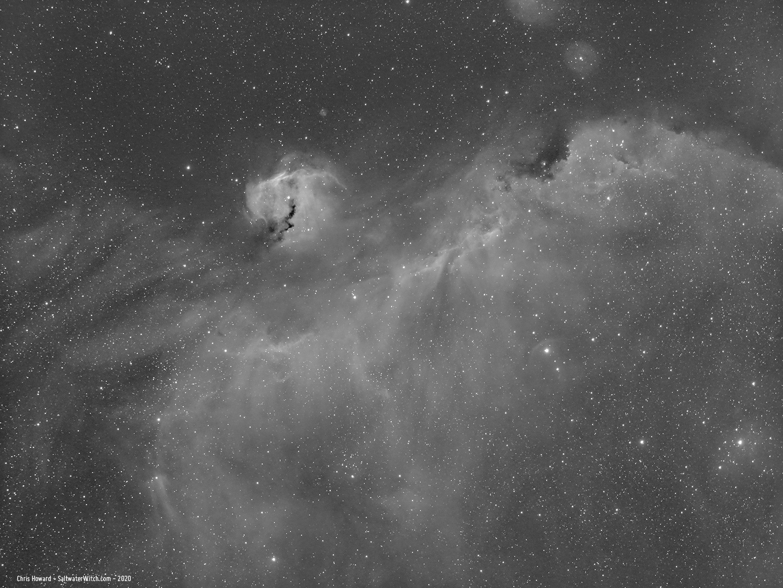 I went with Hydrogen-alpha for last night's run, and targets included with 60 x 240sec subs of IC 405 (Flaming Star Nebula) in Auriga, and 60 x 240sec subs of IC 2177 and NGC 2327 (Seagull Nebula) in Canis Major.