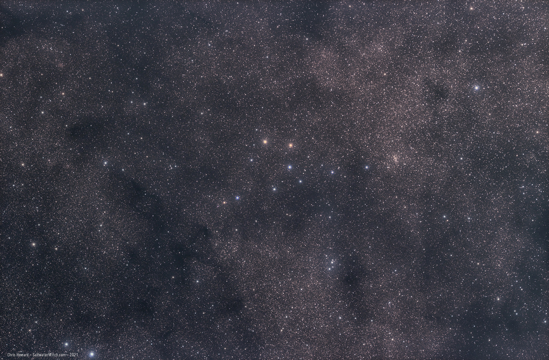 I haven't used the color rig this season, and I was capturing batches of subframes across the sky, mainly to test out focusing. I polar-aligned reasonably well, but didn't guide with these subs. I came away with a bunch of starfield shots, and stacked a couple batches.