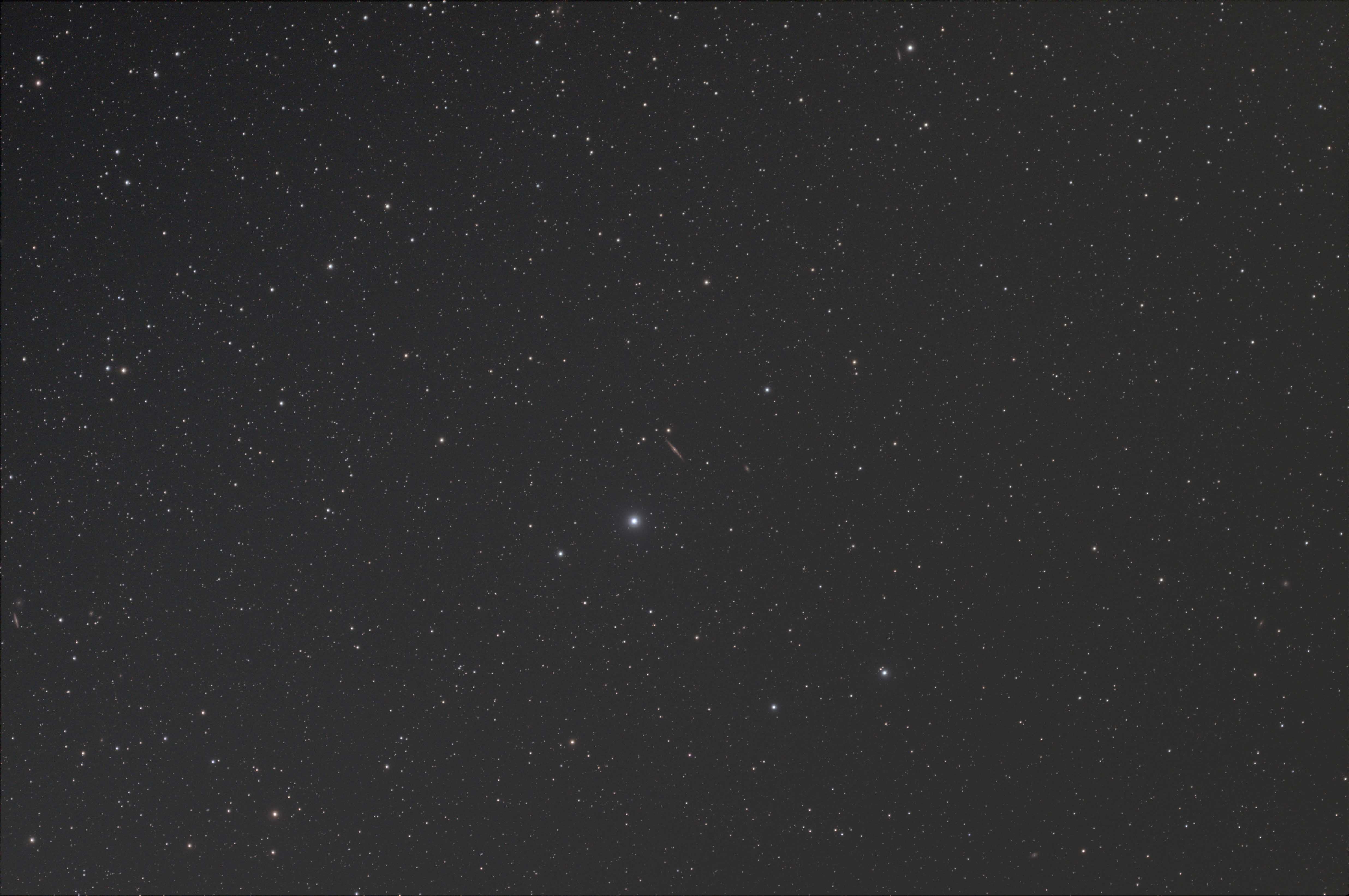 For this set of subs I centered on NGC 5746, the tiny sliver of a barred spiral galaxy in the center. The bright star below it is 109 Virginis in the constellation Virgo. What's crazy about this shot it there at least twenty other galaxies in this frame--probably a lot more that just show up as pinpoints of light.
