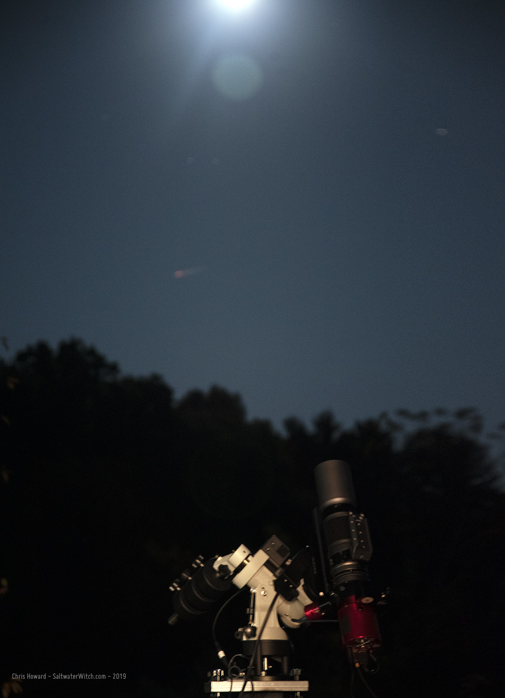 I took a 1-sec exposure of the William Optics SpaceCat 51 during some narrowband subs. There's a beautiful moon out there, but that's not great for taking shots of deep sky objects.