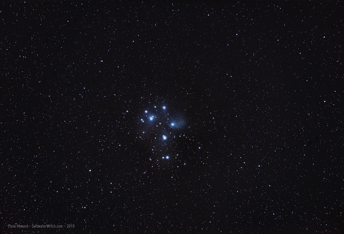 And then a little later I shot 51 25 second shots of M45, the Pleiades--this time at 300mm: