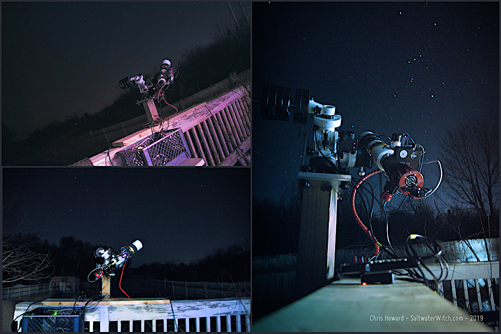 I put together a batch of images from my astrophotography sessions over the last year. This isn't in order, because a wanted a nice mix of color, narrowband, hydrogen-alpha only, wide-field, moon shots, along with some of my astro gear setups for some of these sessions.