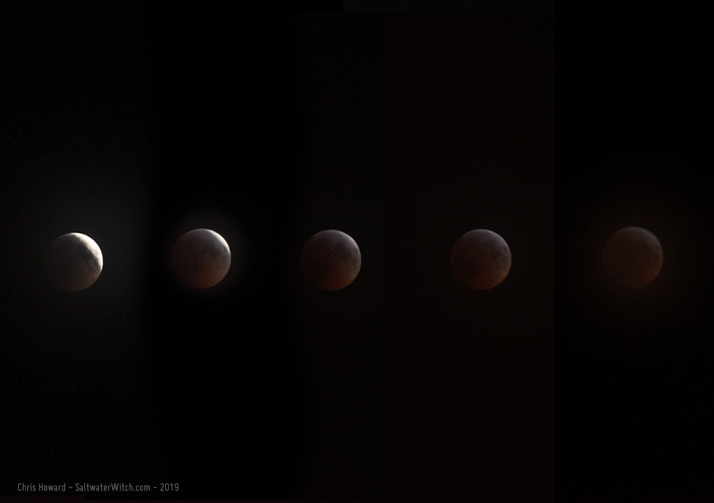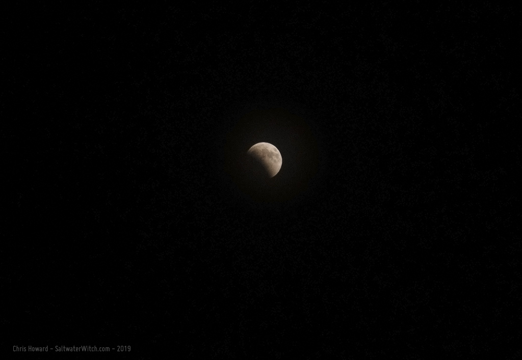A terrible night for a total lunar eclipse--it's freakin' cold (5°F / -15C) and cloudy, but here's a sequence going into the total.
