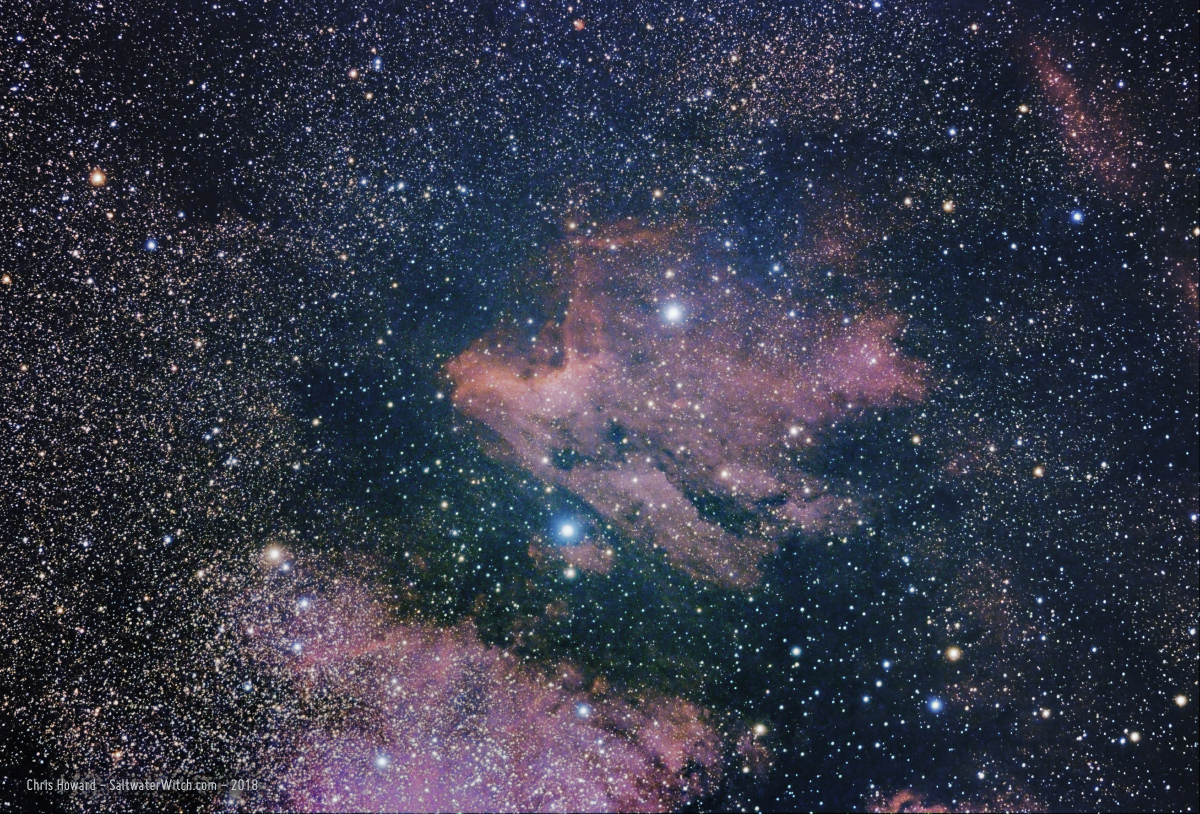 Pelican Nebula image info: ZWOASI071MC 39 x 240 second color subs stacked in DSS, processed in PSCC2018