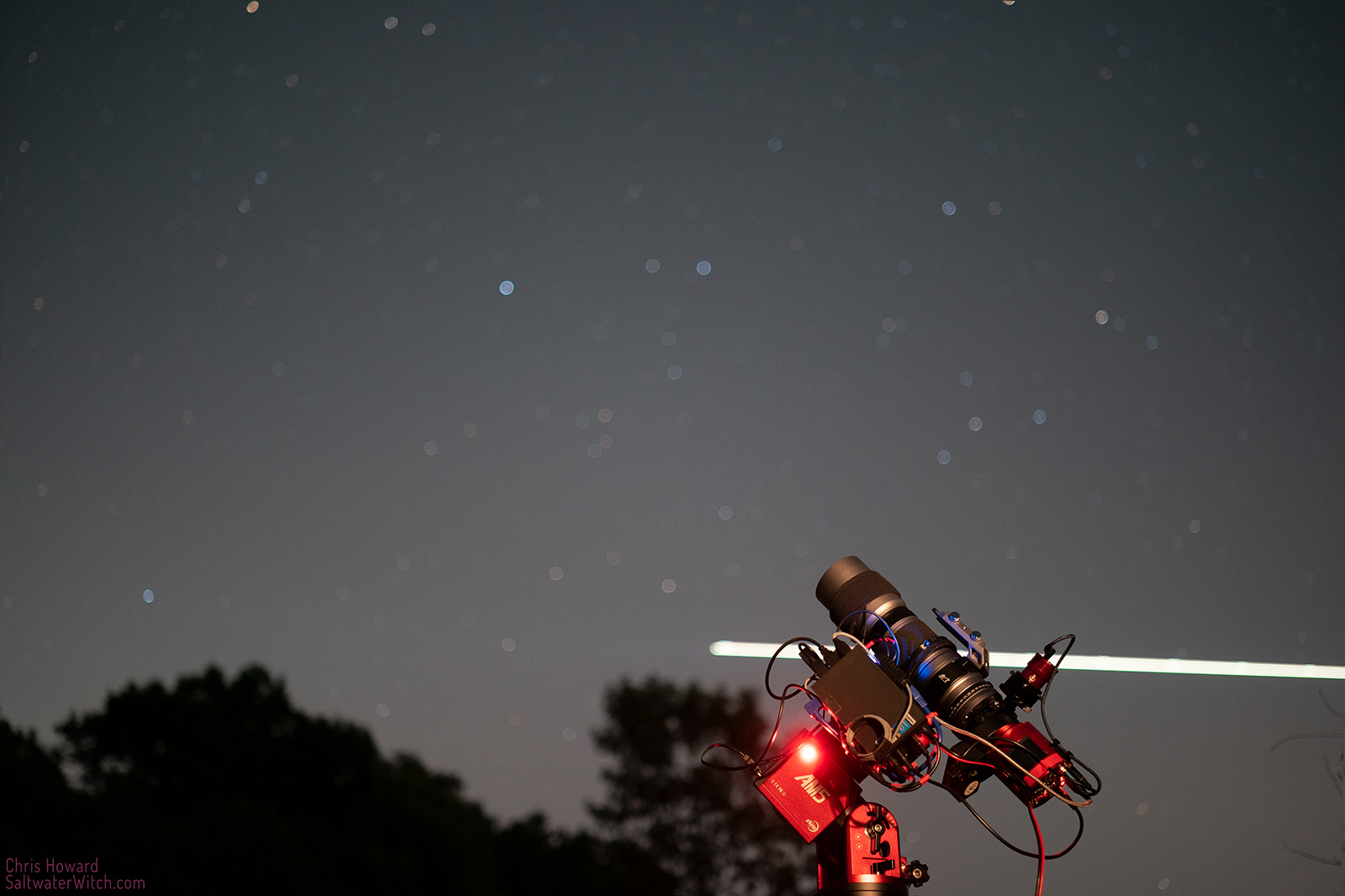 Another one of the astro setup, this time with an Air Force tanker cruising in for a landing at Pease, just outside Portsmouth, in the background. (I think it was a tanker, going by the sound because I couldn't actually see anything but the lights. Pease is home to the 157th Air Refueling Wing).