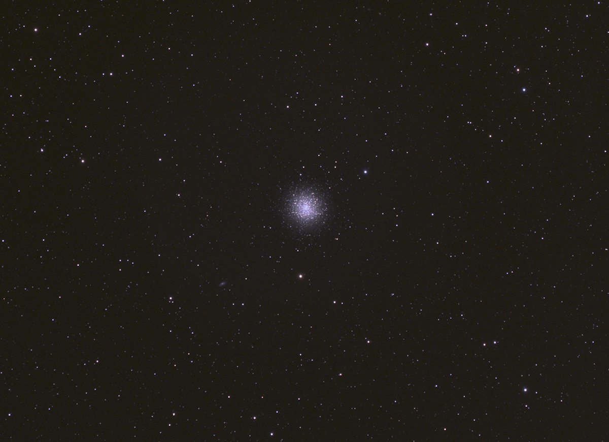 I was experimenting with UV/IR cut filters on the ZWO ASI071MC last night, and took a bunch of test subs without guiding--all 30 second exposures. This is 97 sub-exposures of M13 (NGC 6205) in the constellation Hercules. Messier 13, like most (all?) globular clusters orbit in the halo of the Milky Way galaxy, a good distance away from the core, both above and below the galactic plane.