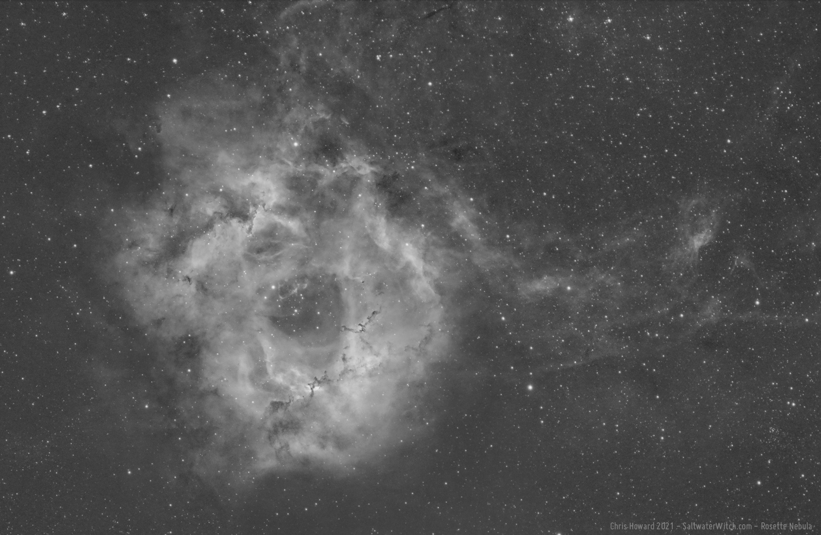 It was nice to finally have the new moon line up with some clear night skies! I'm shooting the Rosette Nebula in Monoceros, right next door to Orion, which I love seeing in the sky.