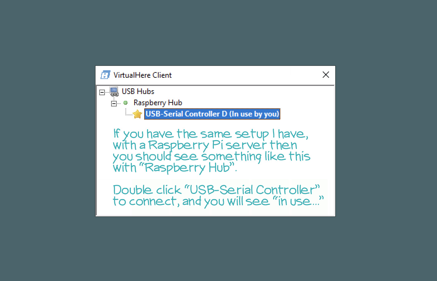 Don at Novaspirit Tech has a great video, walking through the complete setup on the Pi, using Linux on both ends, but it works basically the same with Windows on the client side. (https://youtu.be/I5zA1lU5Tw0). VirtualHere has servers for just about every OS and hardware combination imaginable, and clients for MacOS, Linux, and Windows. Whatever you're running, it's probably supported.