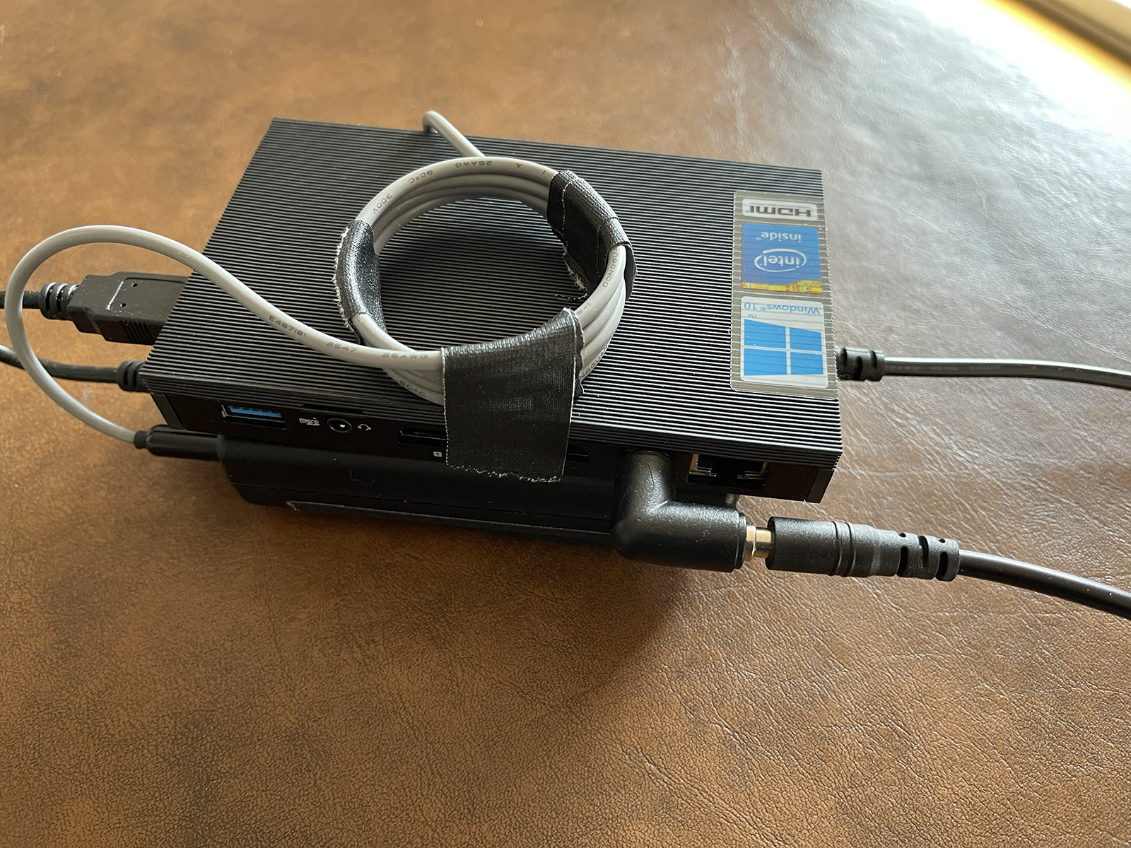 Here's my Windows machine stacked on a Pegasus Pocket Powerbox. This is attached to the telescope, with all USB and dew PWM cables going directly to the devices and dew strips. I run power directly from the Pocket Powerbox to the camera and focuser. The only cable that has to leave the scope is the 12v 10amp line to power the PPB.