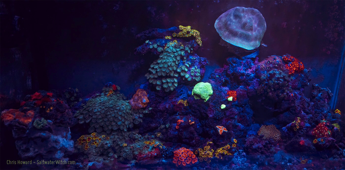 ...what my tank looks like late at night, under the blues and actinic lighting, when the other lights are off.
